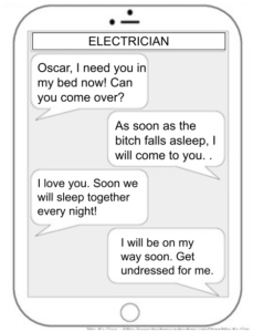 She opened the texting app and laughed loudly that her husband’s electrician was sending sexually suggestive messages.