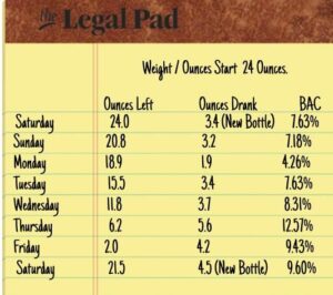 Look! 7 out of the 8 days you are driving over the legal BAC limit!